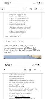 I have been down to Bath City Council to complain about the aggravated fraud that illegally evicted me during December 2016 and June 2017.